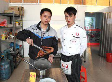 广式烧腊培训学员实操烧鸭作品 广式烧腊培训学员与师傅合影 日期:2016-07-07东莞市虎门镇北侧社区东坊路东方商业大厦三楼301「煌旗小吃培训总部」 Copyright © 2002-2011 煌旗小吃培训 版权所有 粤ICP备14058054号